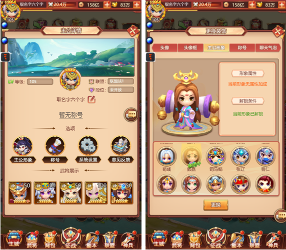 1、主公系统包括主公详情、系统设置、玩家意见反馈、头像、头像框、主公形象、称号和聊天框等,是属于玩家自己的独立小空间。