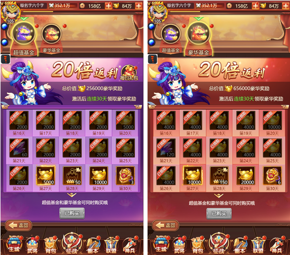1、超值基金是玩家获得大量珍稀资源的一个付费系统。