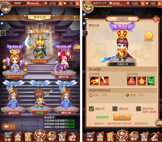 4、挑战特定的敌将会有条件限制,如玩家的等级等,必须达到对应的条件后才可进行挑战。