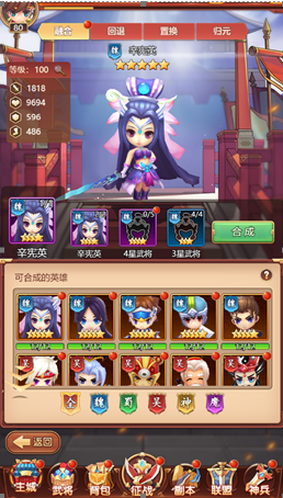 3、融合相当于武将升星,但融合只能将4星融合为5星,5星融合为6星,6星以上只能到武将升星界面升了。