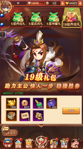 2、 五星武将礼包包含了狗粮将自选,购买可快速集齐升星材料;