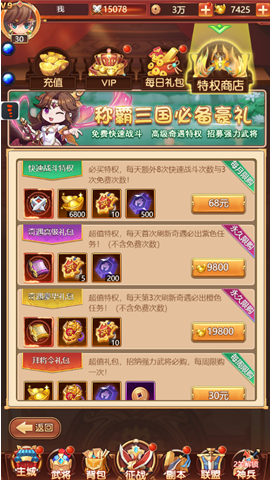 b.每个等级段皆有一个VIP特惠礼包供购买。